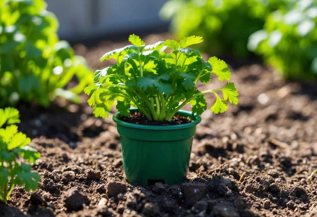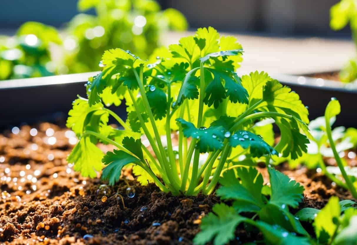 Container cilantro dries out fast, so check soil moisture often and water when the top inch feels dry.