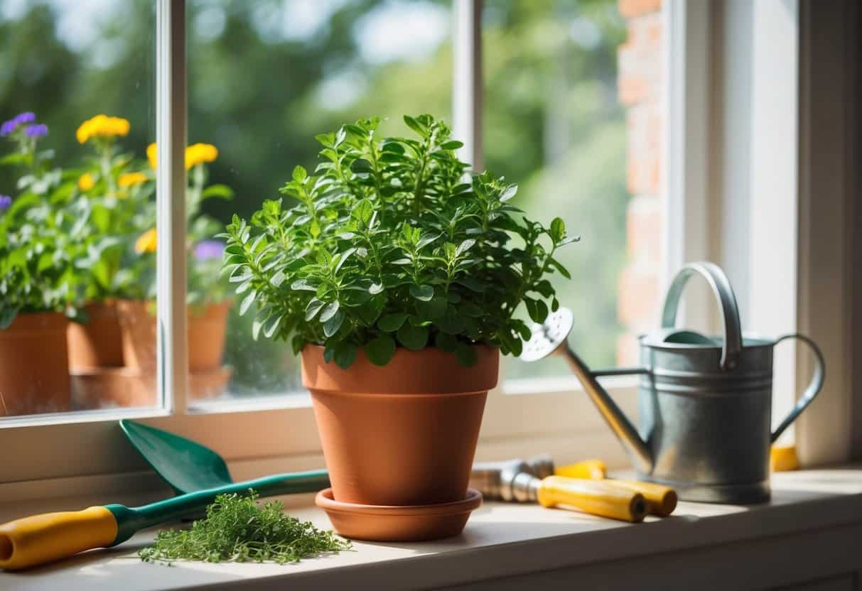 Choose a sunny, south-facing window or use a grow light for at least 6 hours of direct light daily. Keep oregano in a small pot with well-draining soil and make sure the container drains well.